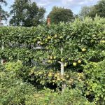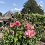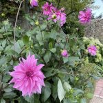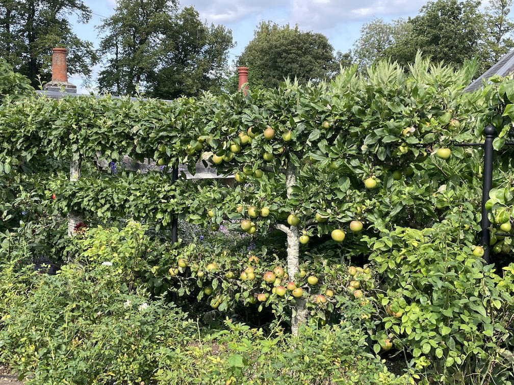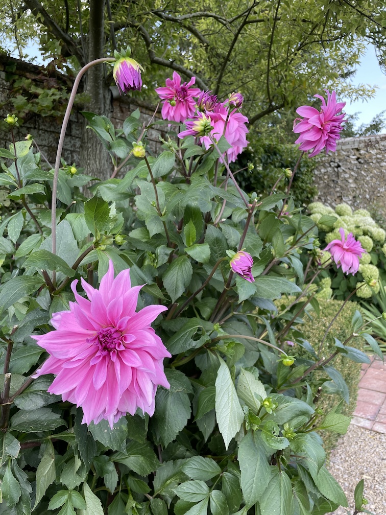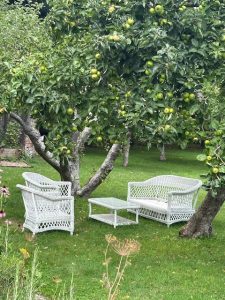 The narrow elegance of a Verbena bonariensis tied loosely against the poolside shelter seemed as elegant as the groaning beauty of the late summer hydrangeas and the sweet smelling daphne either side of an enchanting seat. The orchard and cutting garden were a delight, the white cane chairs and tables beneath the trees timeless in their allure and everything just right!