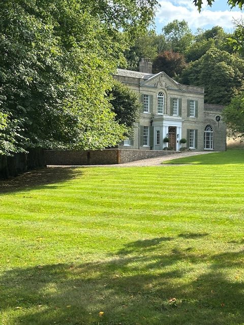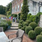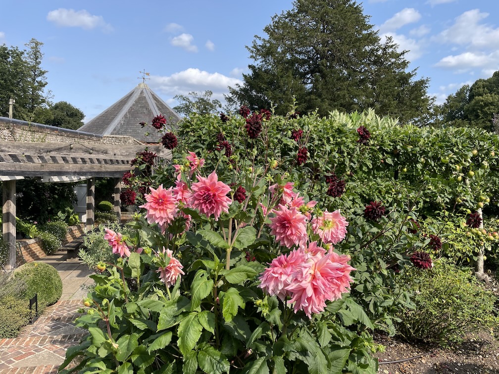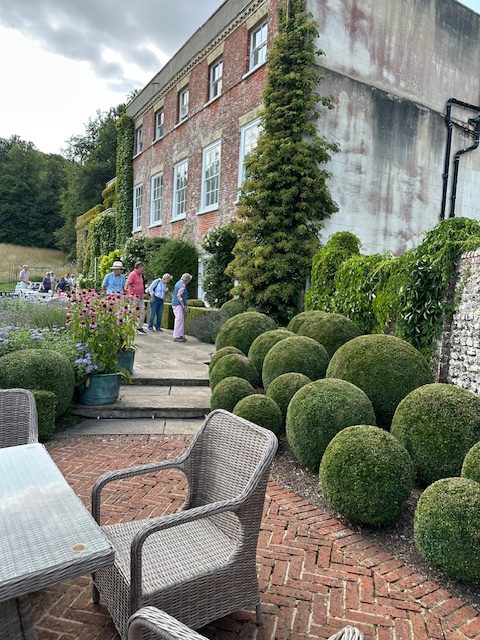 Caroline’s garden, set in a hollow of the Downs, is heaven. The downland grass that surrounds the estate had turned gold after the hot summer and created the loveliest of backdrops to the abundance of flowers and topiaried bushes. Caroline had told us which route to take through the garden and this we followed, repeating our steps time after time and delighting in the very English summer beauty of it all.